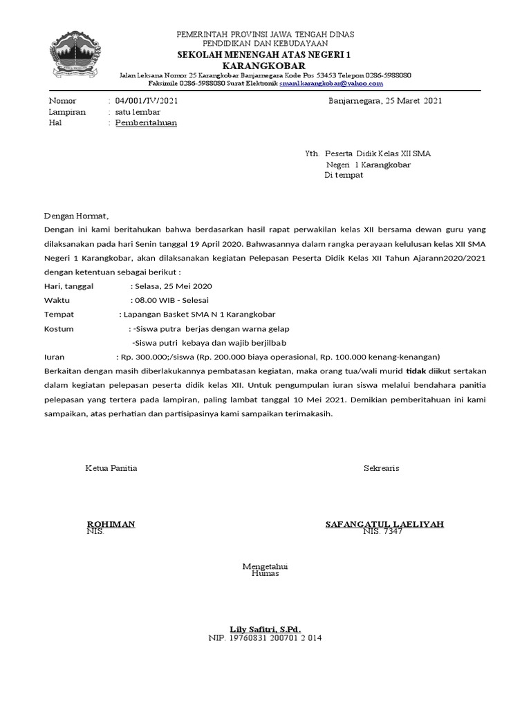 Surat Pemberitahuan Pelepasan Siswa Kelas Xii Pdf